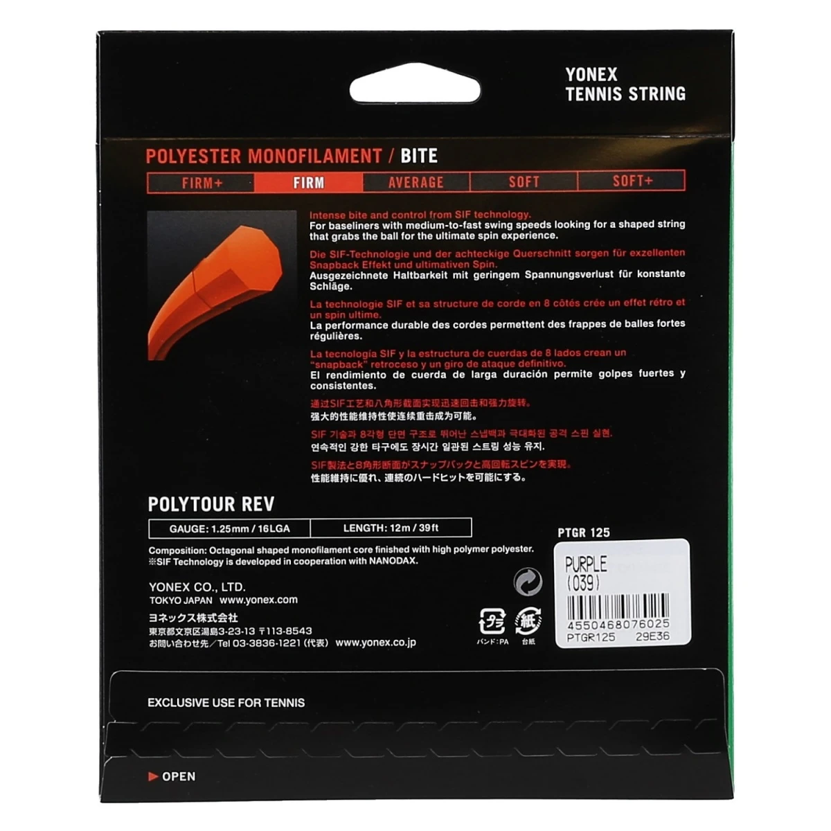 - hoch haltbare Polyestersaite, nun auch von Yonex-Topspielern gespielt
