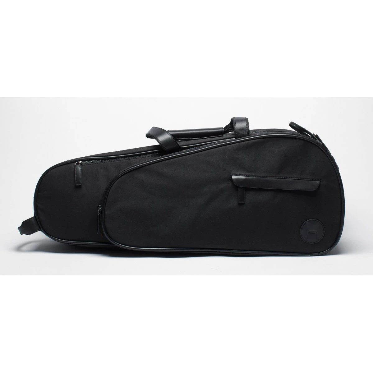 - eine klassische hochwertige Tennistasche aus einem Baumwoll-Canvas-Leder Mix