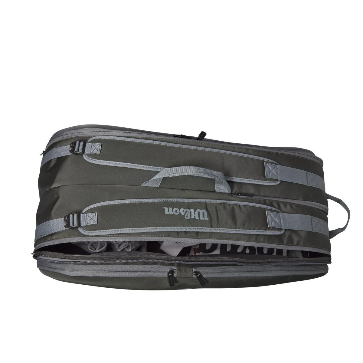- die Tour 12er-Tasche von Wilson in der modischen Farbe Stone hat zwei separate Reißverschlussfächer für Ausrüstung (bis zu 12 Schläger) und Bekleidung